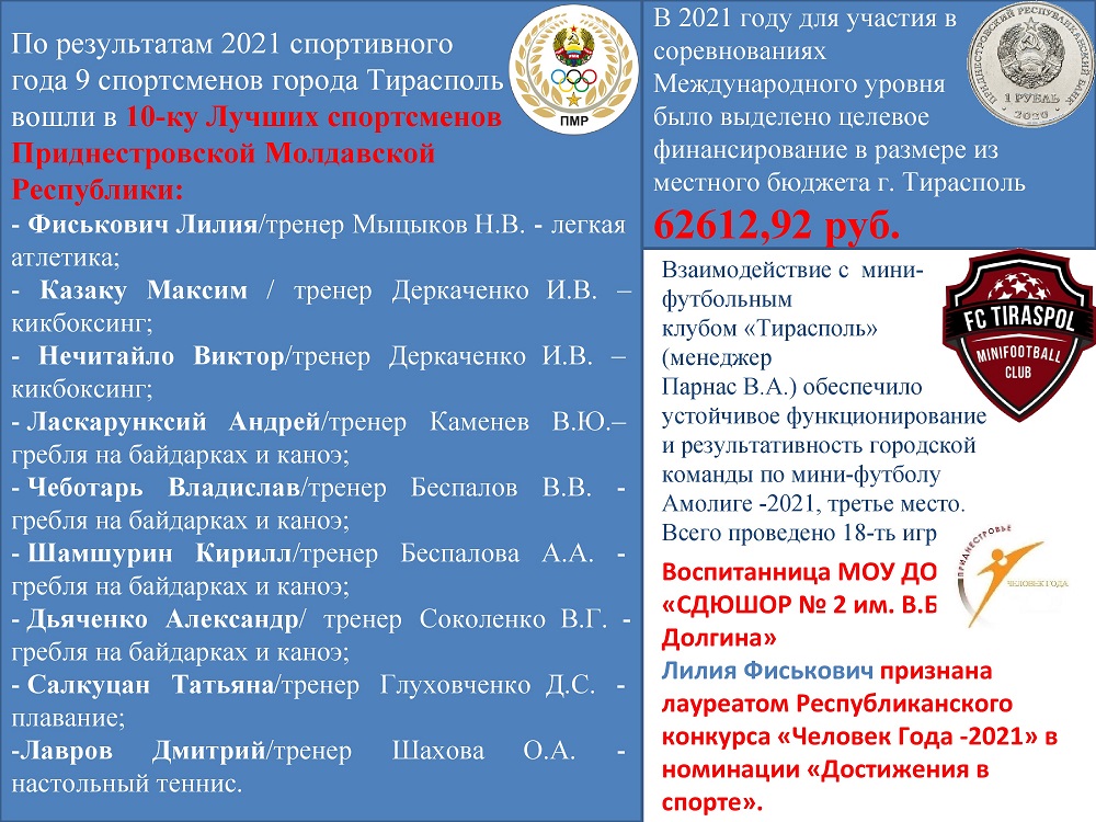 Спорт г. Тирасполя в инфографике (за 2021 год)