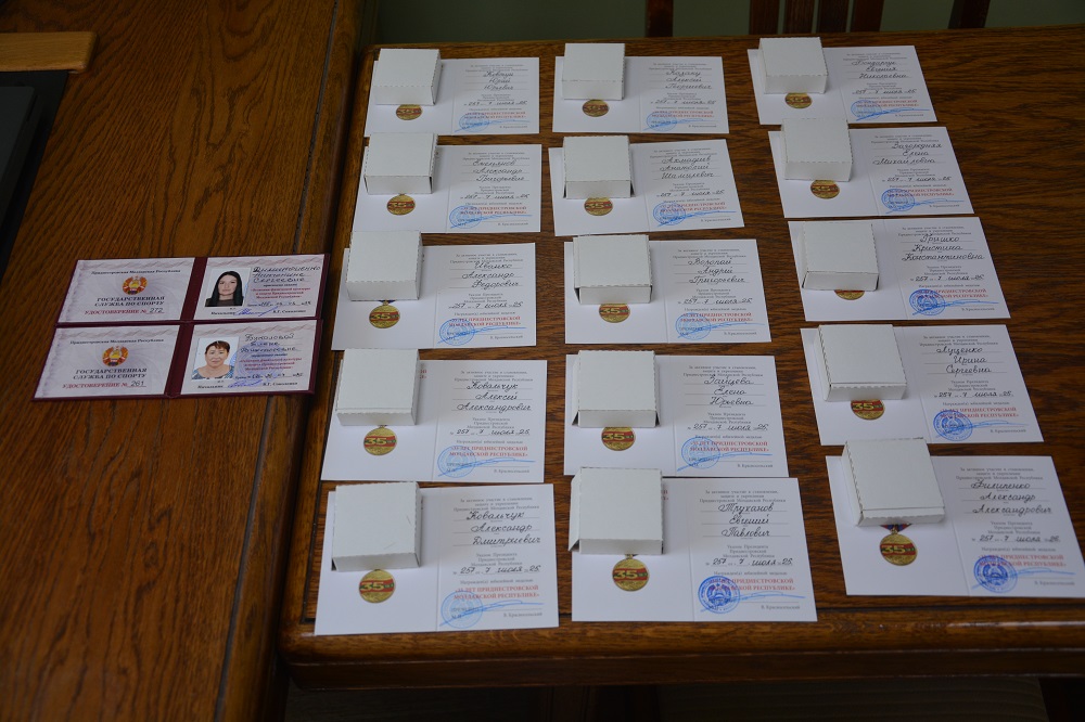 В канун 35-й годовщины образования ПМР, в малом зале Дворца Республики состоялась Торжественная церемония вручения Государственных наград. Ордена, медали, документы о присвоении званий из рук первых лиц государства получили более сотни приднестровцев, представляющих самые разные сферы деятельности.